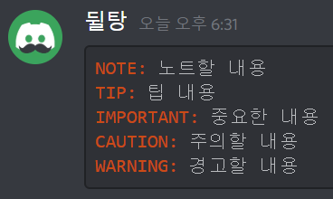 NOTE, TIP, IMPORTANT, CAUTION, WARNING 와 같은 단어들은 오른쪽에 콜론 하나(:)만 붙여도 주황색으로 변합니다. 위처럼 내용을 강조하고플 때 쓸 수 있습니다.