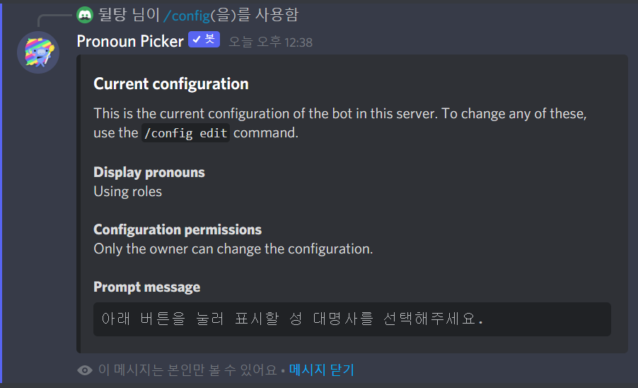 /config - Pronoun Picker 봇의 설정을 바꿉니다