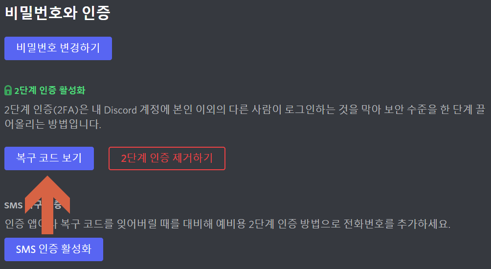 디스코드 2단계 인증 복구 코드 확인하기 / 다운받기