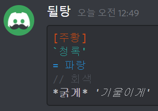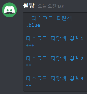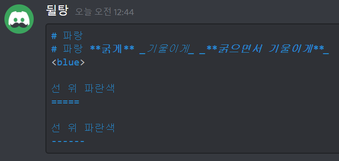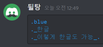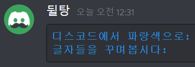 디코에서 글자색을 파랑으로 채팅 꾸미기