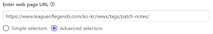 그리고 위쪽의 Enter web page URL 항목을 확인해주세요. 해당 칸에다 알림 받고 싶은 롤, 롤토체스 사이트 주소를 복사해 넣어주시면 됩니다. 롤, 롤토체스 사이트 주소들은 아래에 정리해뒀으니 복사해가시면 됩니다.