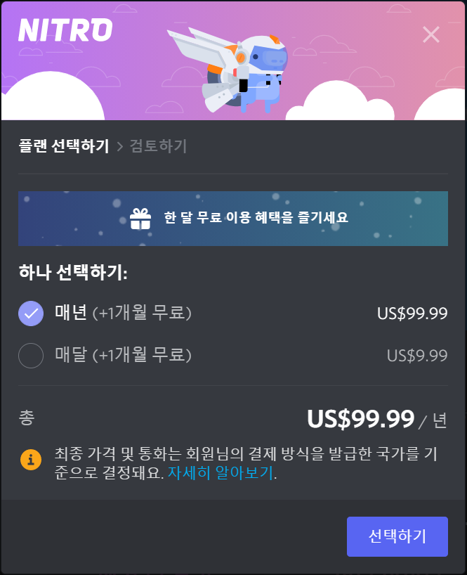 - 새로 1달치 니트로 또는 1년 치 니트로를 가입하시는 분