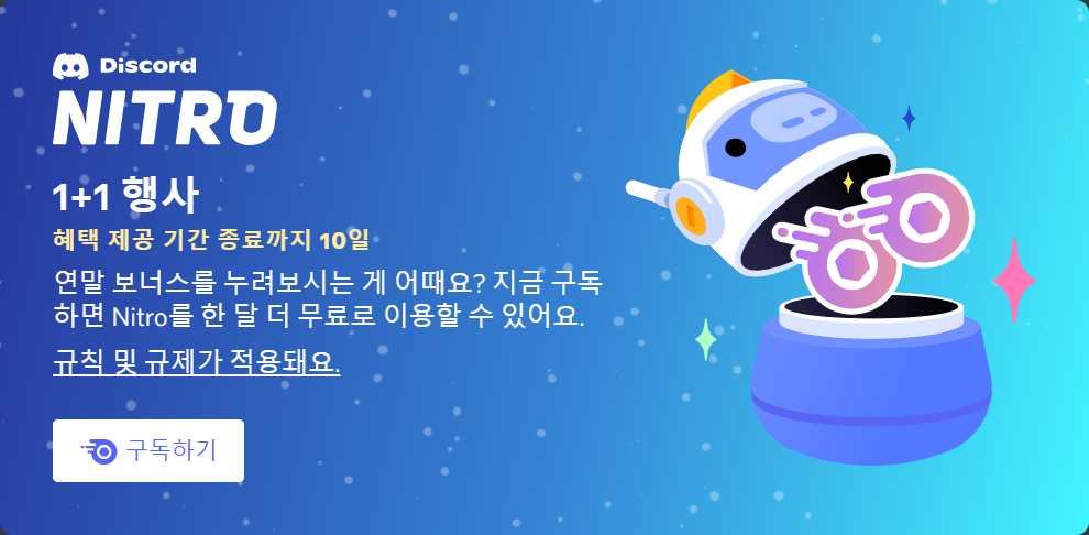 지금까지 디스코드 니트로 1+1 행사에 대해서 알아봤습니다! 혹시 니트로에 대해 더 자세히 알고 싶으시면 아래 글을 봐주세요!