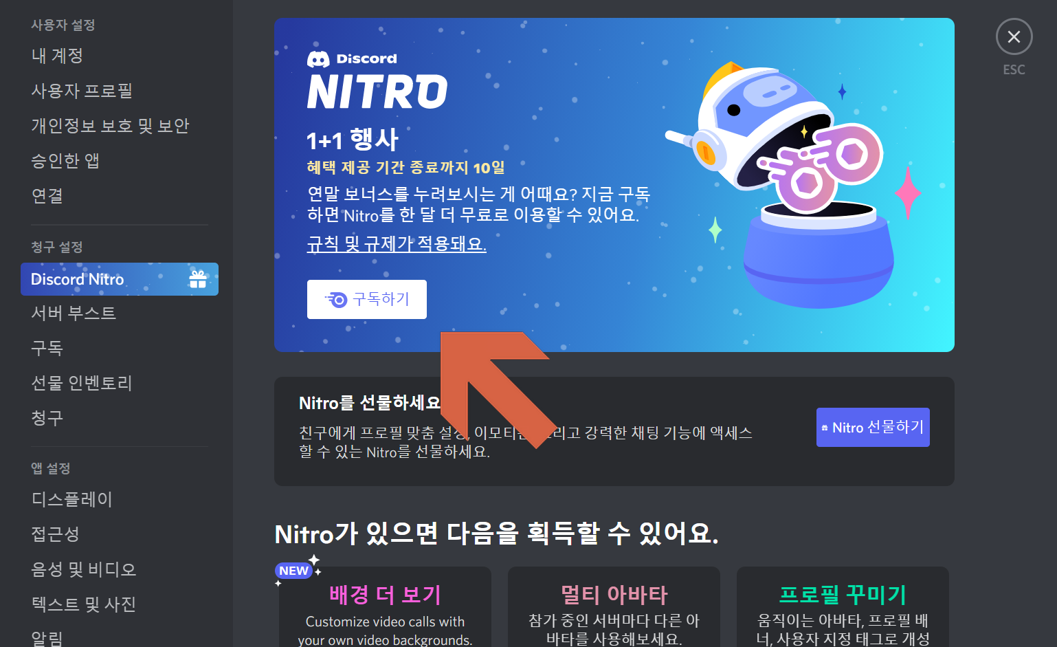 - 새로 1달치 니트로 또는 1년 치 니트로를 가입하시는 분