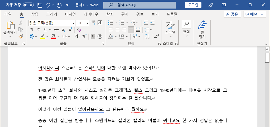 문서 작업 프로그램에 복사하면 다음과 같이 한 문장에 한 줄씩 띄어져 있습니다. 그래서 보기 힘들죠. 따라서 후처리를 해서 이 줄 바꿈을 다 없애줘야합니다.