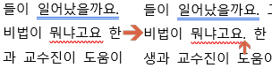 클로바 노트로 복기된 텍스트에는 문장부호가 빠져 있는 경우가 많습니다. 특히 문장 끝에 마침표이 빠진 경우가 많아요. 그래서 다시 한번 Ctrl+H 바꾸기 기능으로 마침표를 붙혀줄겁니다. 찾을 내용에는 위 표처럼 문장 끝에 자주 쓰이는 글자와 뒤에 띄어쓰기를 입력해주세요. 바꿀 내용에는 여기서 마침표를 추가하시면 됩니다.