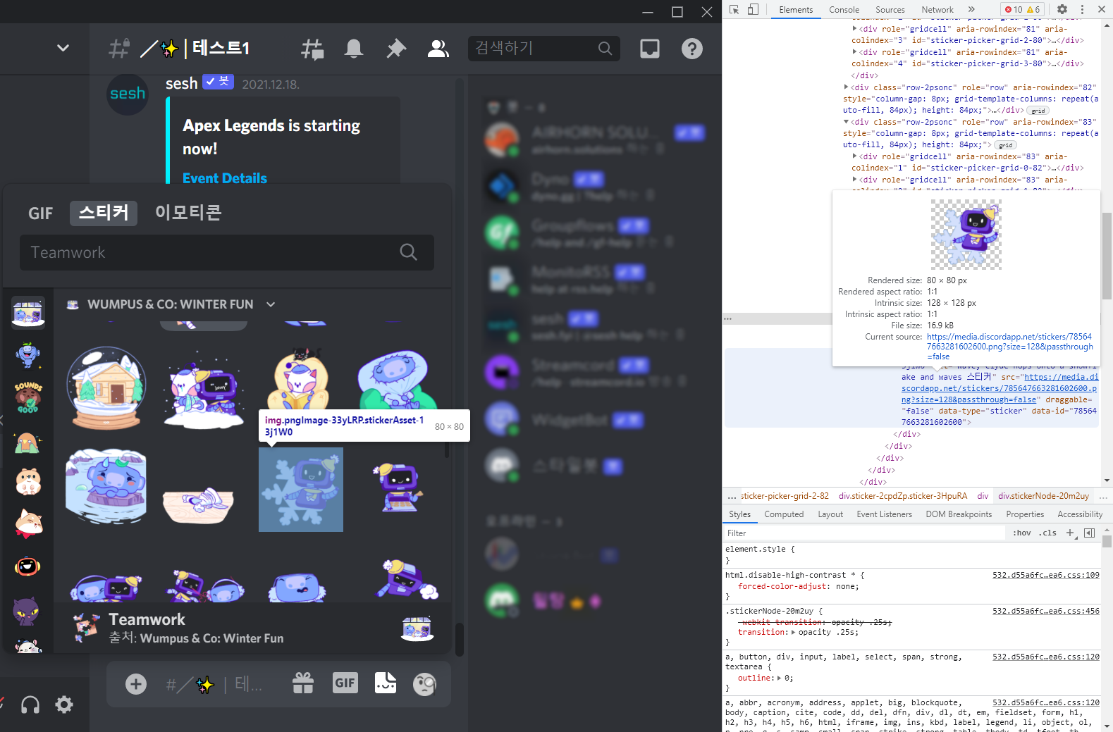 디스코드에서 HTML 페이지 소스를 확인해서 스티커 다운로드