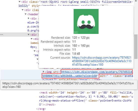 만약 서버에 Dyno봇이 깔려있지 않다면 페이지 소스를 확인해서 아바타를 받으실 수 있습니다. 대신 HTML에 대해서 조금 알고 계셔야되요. 만약 아래 내용이 어려우시다면 Feed&Back 서버에 들어와서 물어봐주세요! 친절히 알려드립니다.