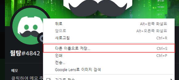 그 후 아바타를 우클릭하면 그냥 사진을 우클릭한 것처럼 저장하기 메뉴가 뜨게 됩니다!