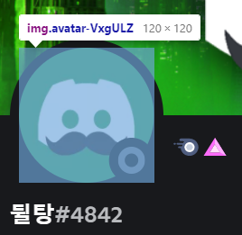 이제 Shift + Ctrl + I를 눌러 개발자 도구를 켭시다. (만약 개발자 도구가 열리지 않는다면 이 글을 참고해주세요!) 맨 위 메뉴의 Element를 눌러 HTML 코드를 보고, 태그 옆의 삼각형을 눌러 접었다 펴가며 위처럼 아바타가 선택되도록 해주세요.