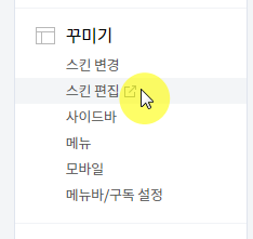 이제 이 HTML 코드를 HEAD부분에 붙여 넣어주셔야 하는데, 티스토리 블로그를 쓰시는 분 기준으로 말씀드릴게요. 일단 설정에 스킨 편집으로 들어가 주세요.