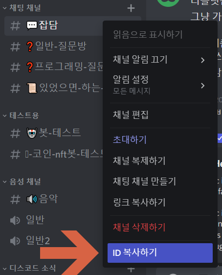 봇을 개발하지 않는 사람들에게도 ID는 유용합니다. 여러 정보를 알 수 있거든요. 예를 들어서 메시지 링크 복사를 통해 메시지 링크를 확인해보시면