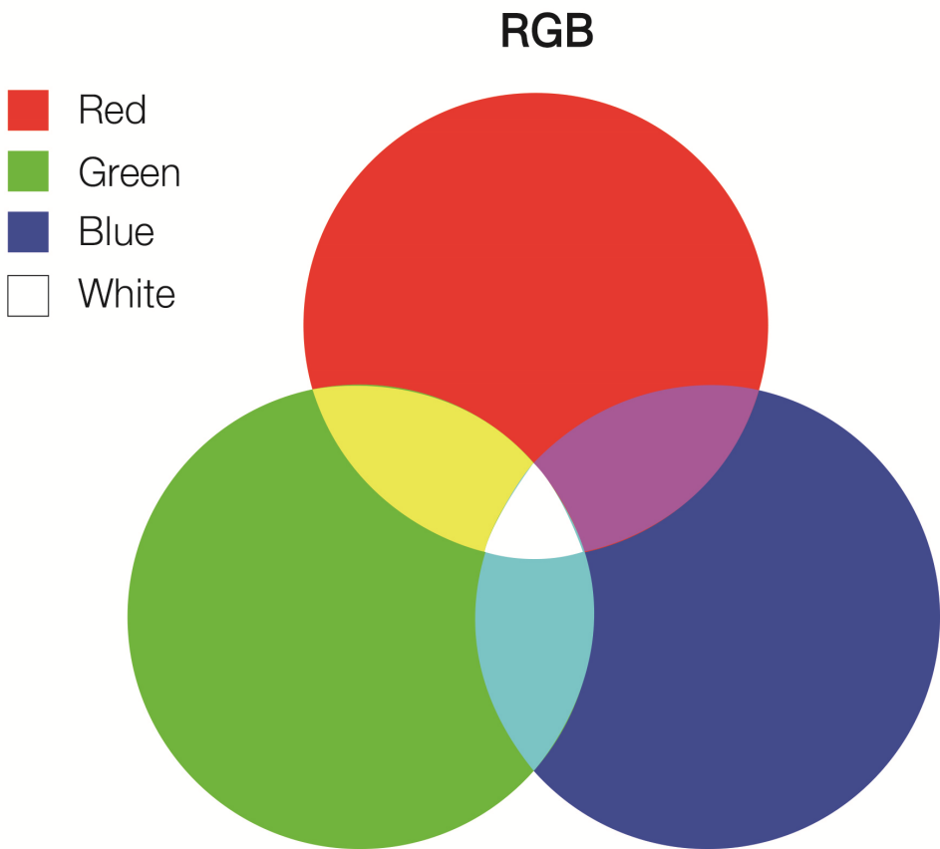 빛의 3원색하면 무엇이죠? 바로 빨강, 초록, 파랑이죠. 영어에서 앞글자를 따와서 RGB라 부르기도 하죠. 현실에서 이 3가지 빛을 섞으면 모든 색깔을 만들 수 있습니다. 컴퓨터에서도 마찬가지로 모든 색상을 이 3가지 색상이 얼마냐 섞였는지로 구분합니다.