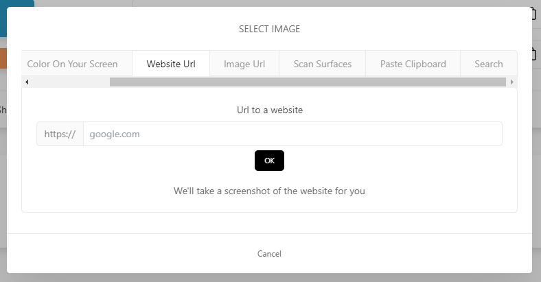 웹사이트 url 주소를 올리면 해당 웹사이트를 캡쳐해서 보여줍니다. 이 캡쳐에서 원하는 색상을 뽑으시면 됩니다!