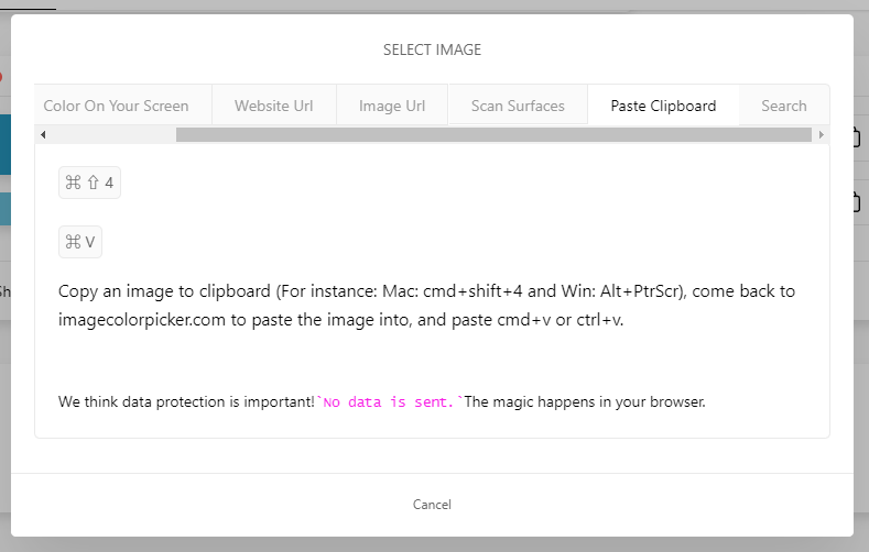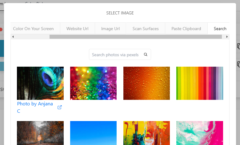 위와 같이 여러가지 방법 중 하나로 사진을 업로드 했으면, 이제 색상을 뽑아오는 방법에 대해 알아봅시다.