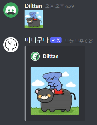 위와 같이 복잡해서 잘 안보였던 이모티콘도 확대해서 크게 보여줍니다. 따라서 미니쿠다 봇만 있으면 작은 글씨가 있거나 너무 복잡한 이모티콘들도 서버에 추가해서 쓸 수 있겠지요. 마치 카톡 이모티콘과 같이 말이죠!