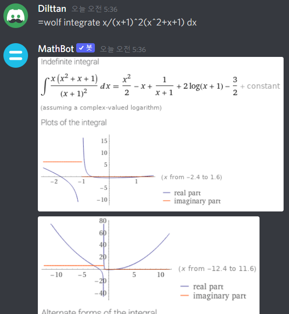 LaTeX와 Wolfram alpha 검색이 가능한 봇!