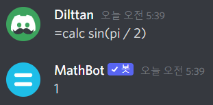 MathBot의 접두사는 등호(=)입니다. 이 봇의 모든 명령어 앞에는 =가 들어간다는 뜻입니다.
