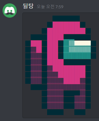 글자색, 배경색, 특수문자로 도트 그림을 만들어봅시다! 디스코드에서 이번 업데이트로 글자색 뿐만이 아니라 배경색도 쓸 수 있게 되었고, 또 표현할 수 있는 색도 많아졌죠. 이에 따라서 위 사