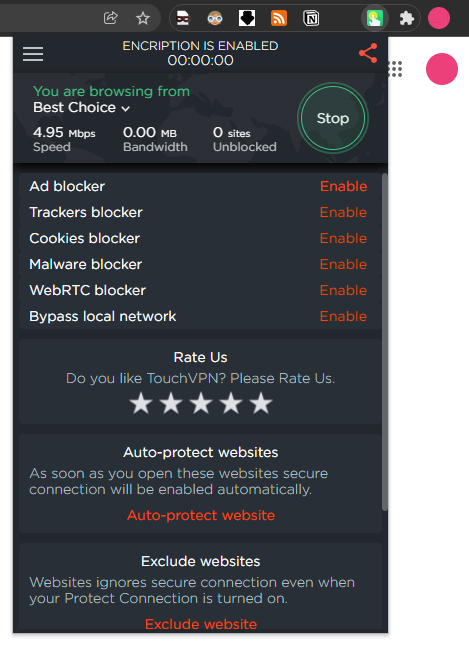 버튼을 누르면 위처럼 화면이 바뀝니다. 이러면 이제부터 VPN이 작동한 것이며, 접속 사이트에서는 설정한 국가로 인식합니다.
