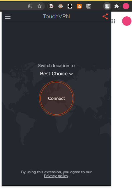 이제 VPN을 켤 차례입니다. Torch VPN을 여신 다음 가운데 Connect 버튼을 눌러주세요.