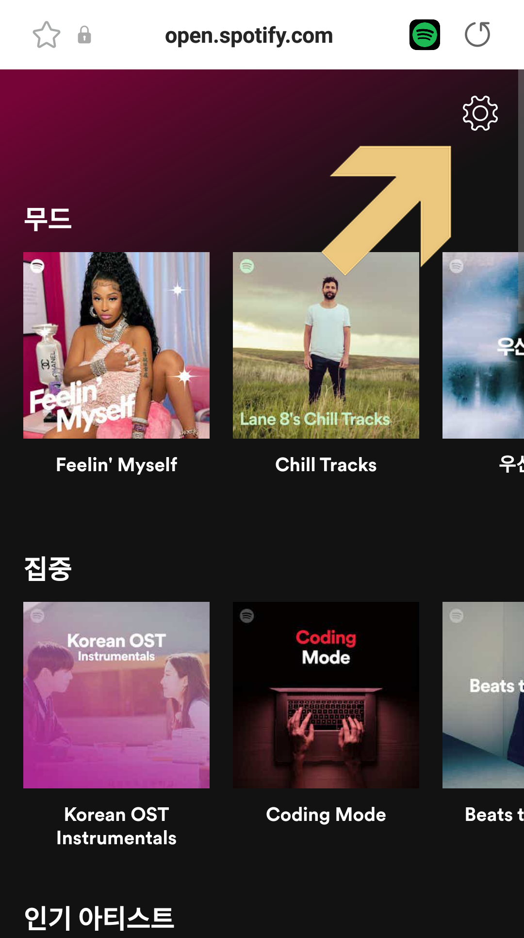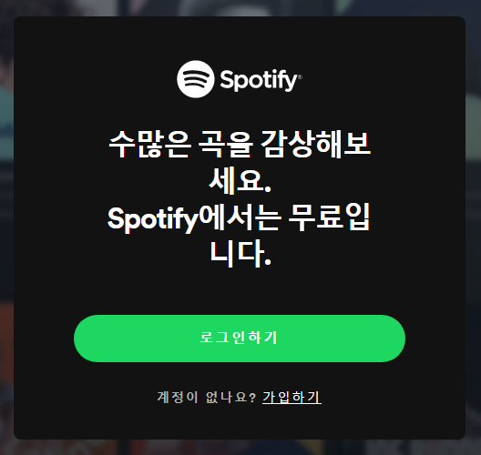 우선 스포티파이 한국 사이트에 들어가서 오른쪽 위의 가입하기를 눌러주세요.