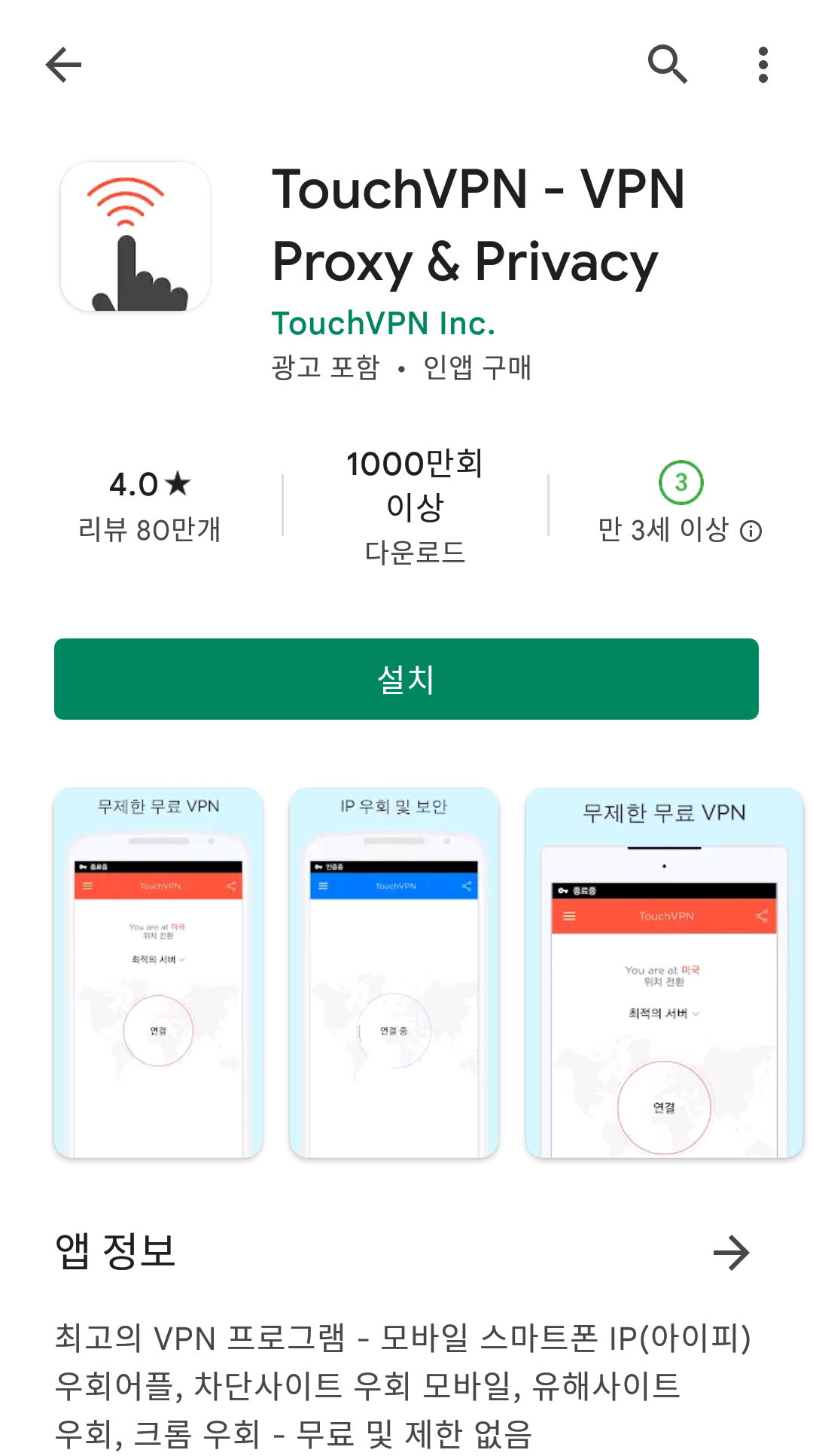 그 후 자신의 휴대폰에 맞게 위 링크를 클릭해 앱 스토어에 들어가 주세요. 그 후 VPN 앱을 설치해주시면 됩니다. 안드로이드에서는 기존대로 Touch VPN을 걸어놓았지만, 애플에서는 무료가 아니라는 소리가 있어 VPN Master 페이지를 링크해놨습니다. 들어가서 앱을 다운로드 하셨으면 앱을 켜서 VPN을 활성화해 주세요.