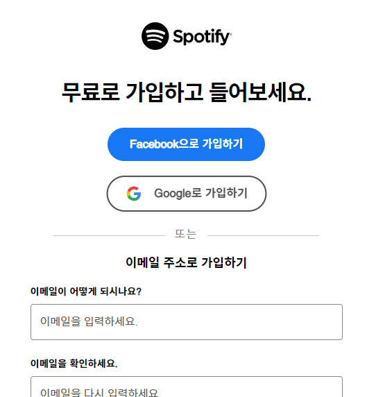 스포티파이 계정을 만들어줍니다. 이 단계에서는 VPN을 켜실 필요가 없습니다.