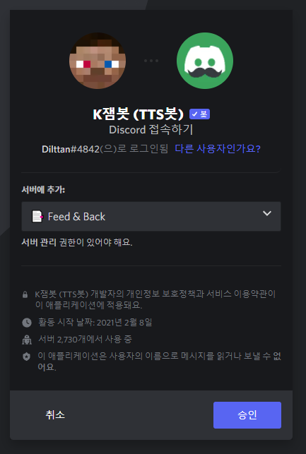 K잼봇 서버에 추가하기