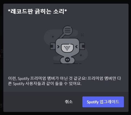 만약 클릭하는 사람이 스포티파이 계정과 연결이 되어있지 않다면, 스포티파이 계정과 연결하라고 안내가 뜹니다.