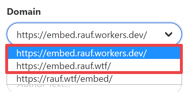 - Domain : https://embed.rauf.workers.dev/