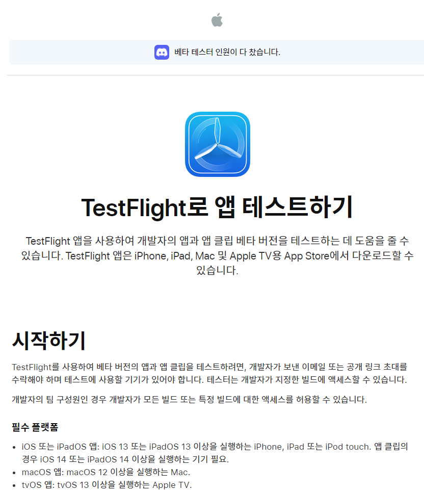 iOS에서 베타 버전을 이용하시려면 TestFlight 앱을 설치하셔야 합니다. 위 링크로 들어가 설치해주세요.
