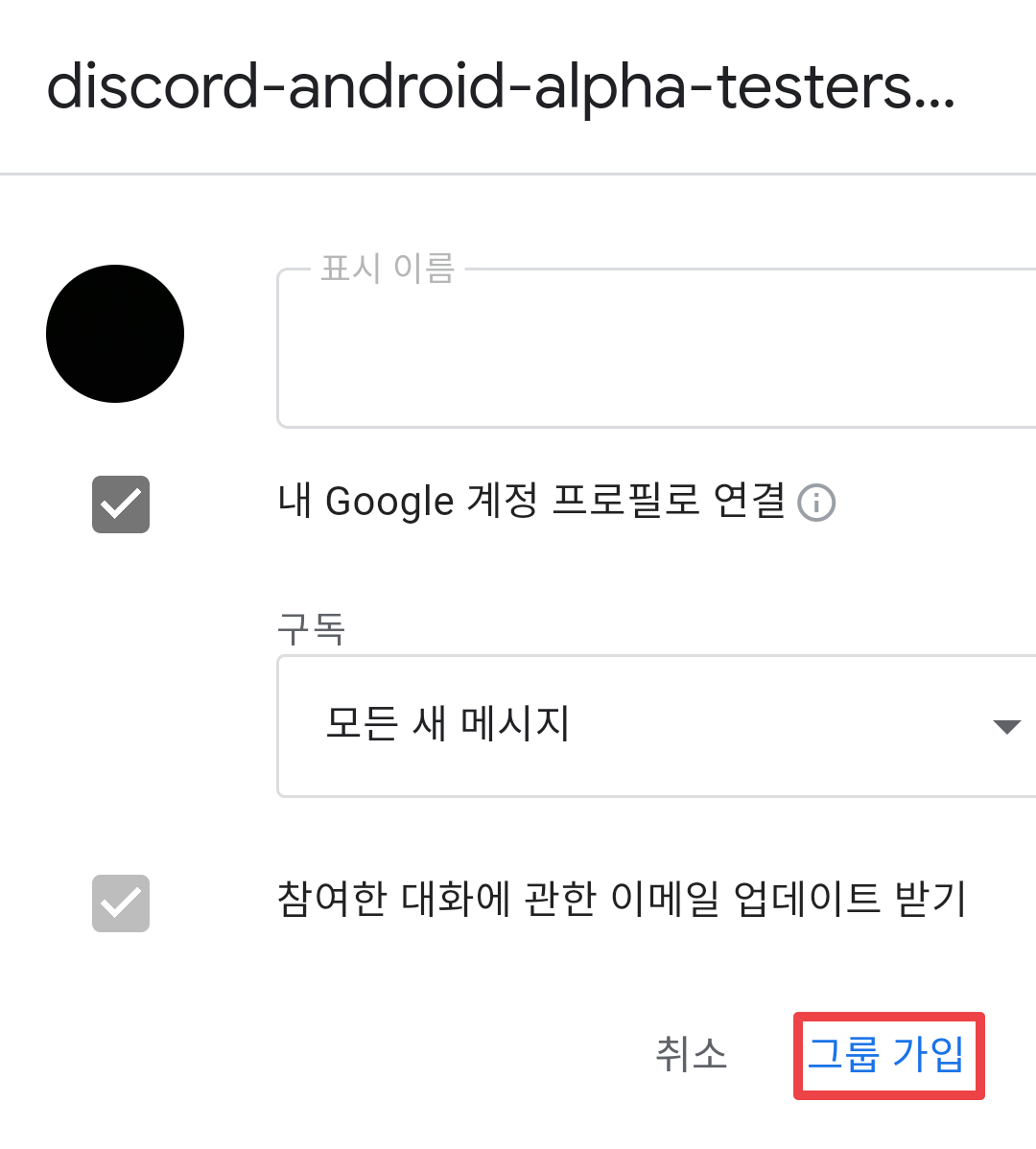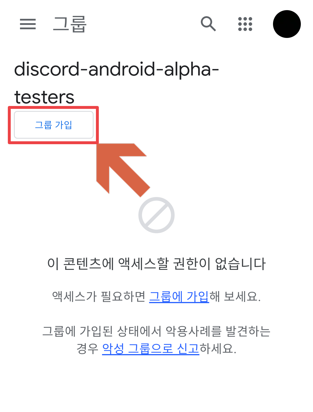 위 링크로 들어가 디스코드 안드로이드 알파 테스터 그룹에 들어가줍시다. 그룹에 가입을 눌러주세요.