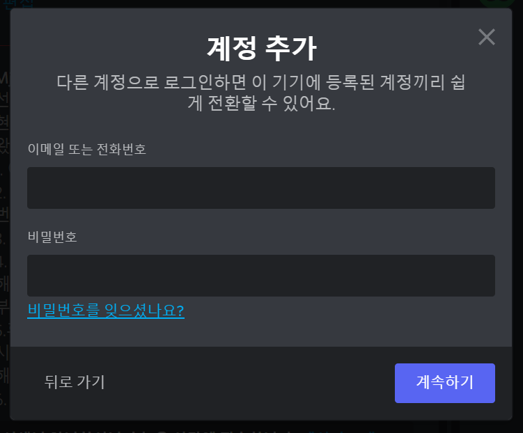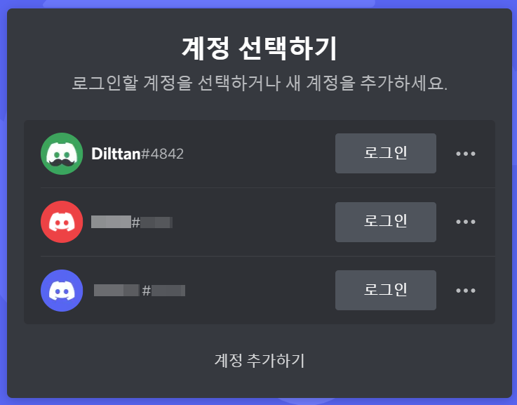 디스코드 계정 전환에 계정 등록하기