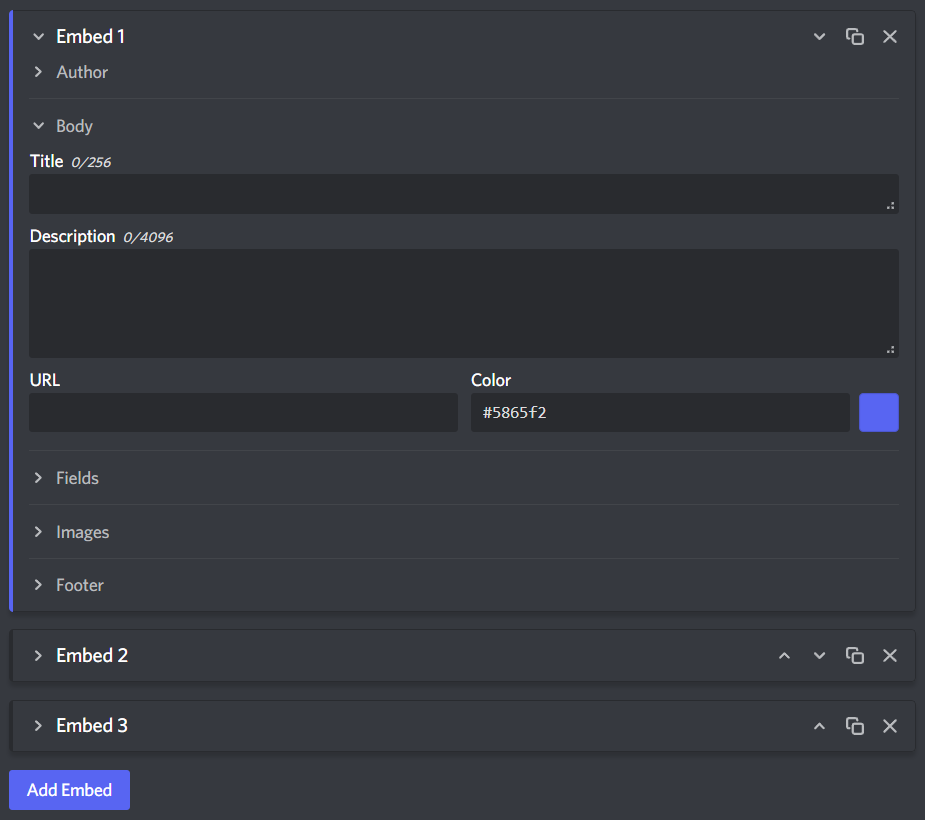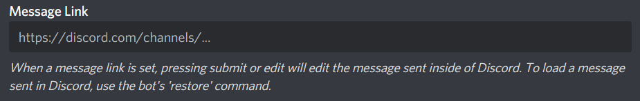 해당 칸에 디스코드 메시지 링크를 입력하면 새로운 메시지를 보내는 대신 해당 메시지를 수정하게 됩니다.