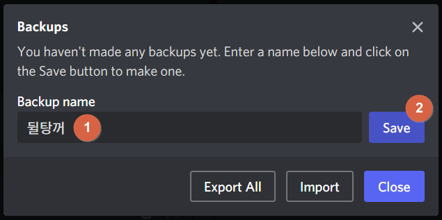 그리고 다시 돌아와 Backup name에 저장할 이름을 입력한 다음 Save를 눌러줍니다.