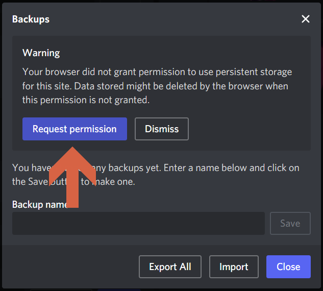 웹 사이트에 설정을 저장해주시려변 우선 오른쪽 위의 Backups 버튼을 누릅니다.