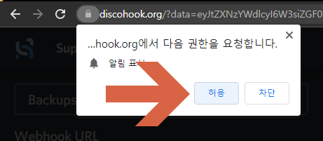 그 후 오른쪽 위에 알림 표시 권한을 요청하면 허용을 눌러줍시다.