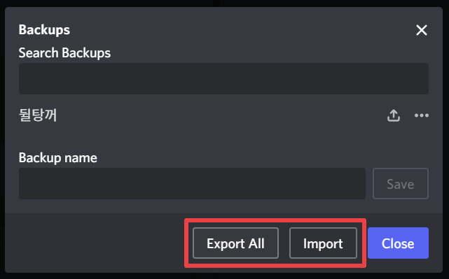 좀 더 확실하게 설정을 저장하고 남들에게 공유해주고 싶으면 파일 형태로 저장해 보세요. 파일 형태로 저장하시려면 아래 Export All 버튼을 누르시면 됩니다.