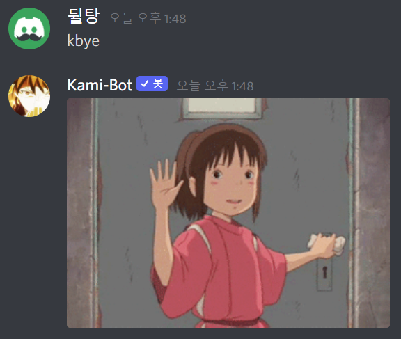 - kbye : 랜덤 작별인사 움짤을 보여줍니다.
