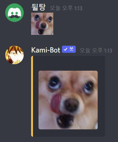 카미봇(Kami-Bot)은 미니쿠다처럼 작은 서버 이모티콘을 확대해주는 봇입니다! 최근에 미니쿠다 봇이 원인 모르게 계속 오프라인 상태죠. 그래서 미니쿠다 봇 대신 이 봇으로 서버 이모티콘을 키워서 보세요!