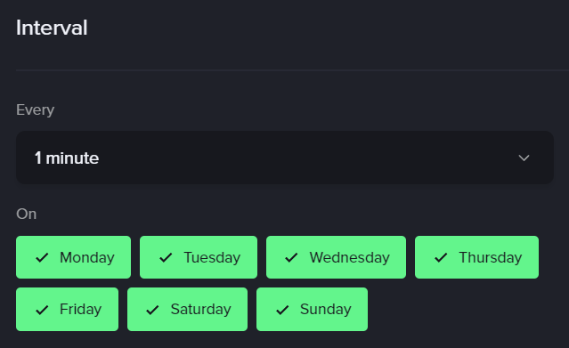 설정한 간격마다 메시지를 보냅니다. 1분부터 1일까지 다양하게 설정 가능합니다.