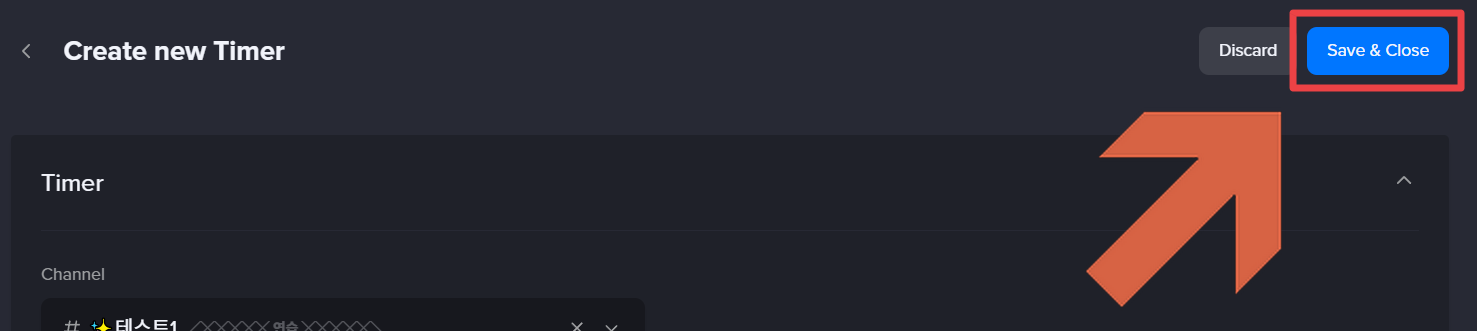타이머 설정을 다 마치시고 오른쪽 위의 Save & Close를 눌러 저장해주시면 됩니다. 타이머 설정 항목들은 아래와 같습니다.