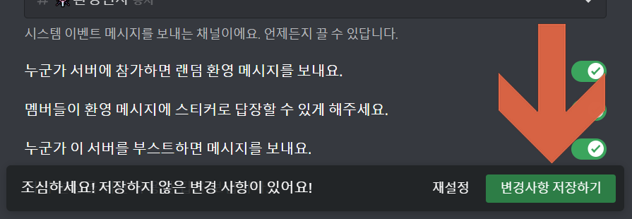 화면 맨 아래의 변경사항 저장하기를 눌러주시면 됩니다.