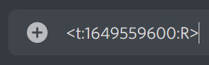 위에서 보여드린 시간 표시는 타임스탬프(Timestamp) 메시지 포메팅이라고 불립니다. 타임스탬프(Timestamp) 메시지 포메팅은 위와 같은 형식으로 구성되어 있습니다. t: 뒤에 유닉스 시간과 스타일을 입력한 다음 꺽쇠 괄호<>로 감싸주시면 됩니다.
