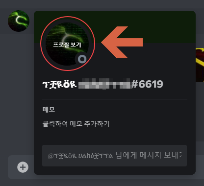 주의하실 점은 상대방이 자신의 서버에 들어왔는지 꼭 확인해봐야 된다는 점입니다. 상대방이 서버에 들어왔는지 확인하려면 그 사람의 프로필 사진을 클릭해줍니다. 그리고 창이 뜨면 다시 그 창에서 프로필 사진을 클릭해주세요.