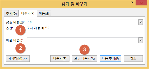 워드에서 줄바꿈 없애고 문장부호 추가
