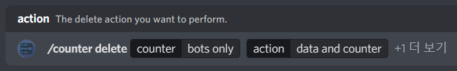 그럼 /counter delete 명령어를 쓰신 다음 counter 종류로는 bots, action으로는 data and counter를 선택해줍니다. 그럼 해당 카운터 채널이 지워지게 됩니다.