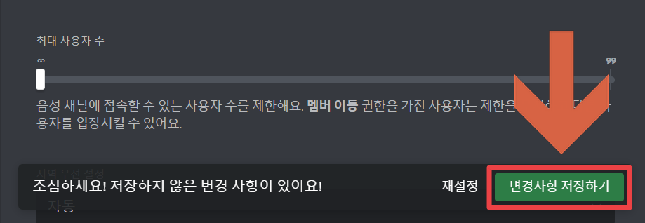 채널 이름을 정하셨으면 맨 아래 변경사항 저장하기를 눌러주세요.