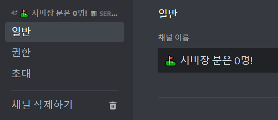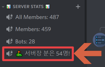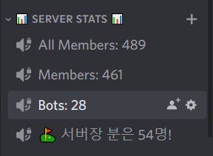 이제 원하지 않는 카운터 채널을 삭제해봅시다. 예를 들어 위 예시에서 봇의 수를 표시하는 카운터 채널이 맘에 들지 않는다고 해봅시다.